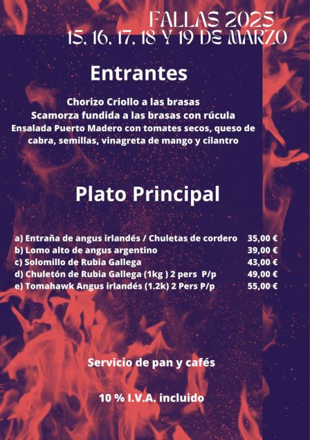 Durante los servicios del mediodía de los días 15, 16, 17, 18 y 19 de Marzo, no estará disponible la carta regular del restaurante. Sólo estará disponible el Menú de Fallas.